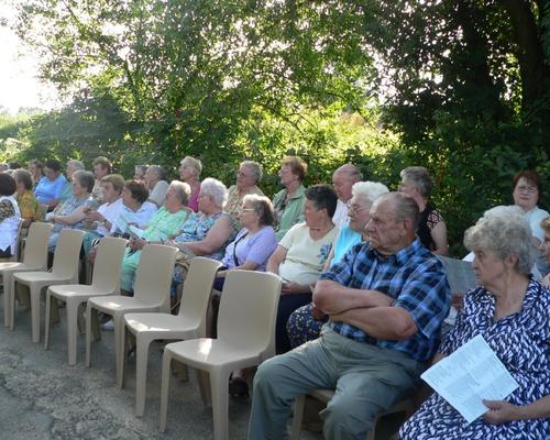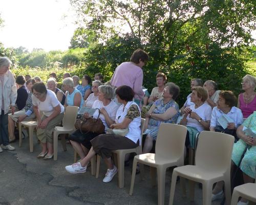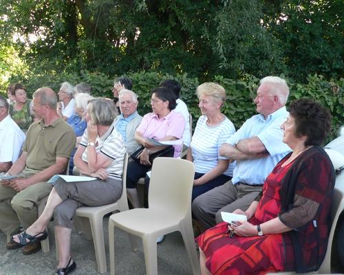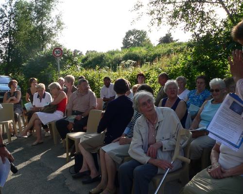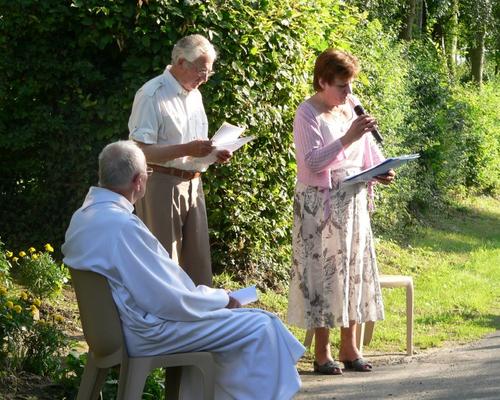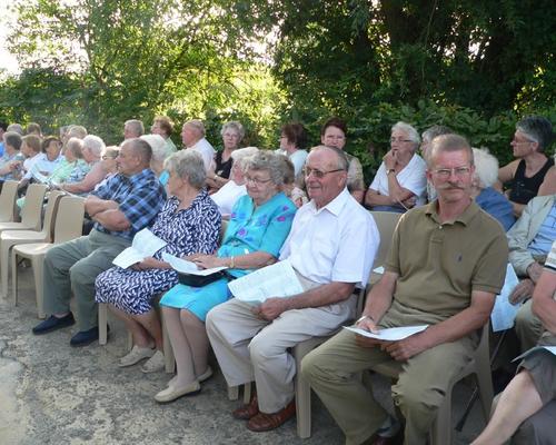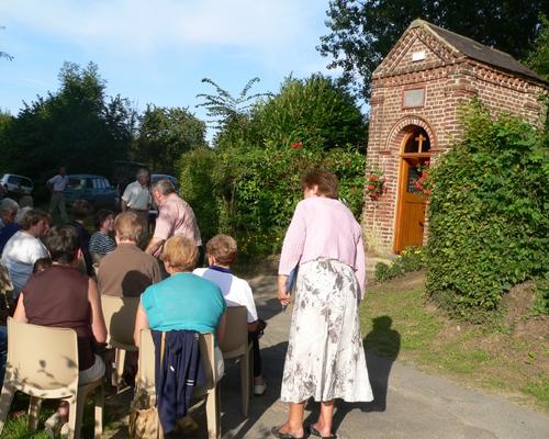 Les pèlerins se rassemblent devant la chapelle Notre Dame de Bonsecours
